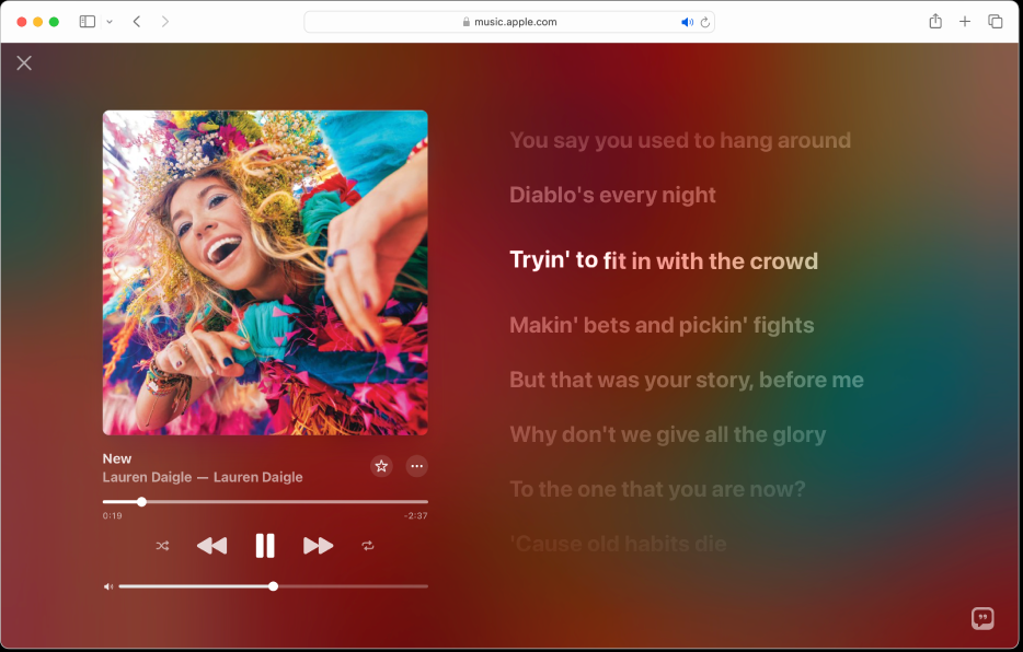 The current lyric at the center, if the lyric is end, next lyric will move to the center to replace the old one.